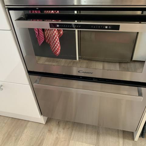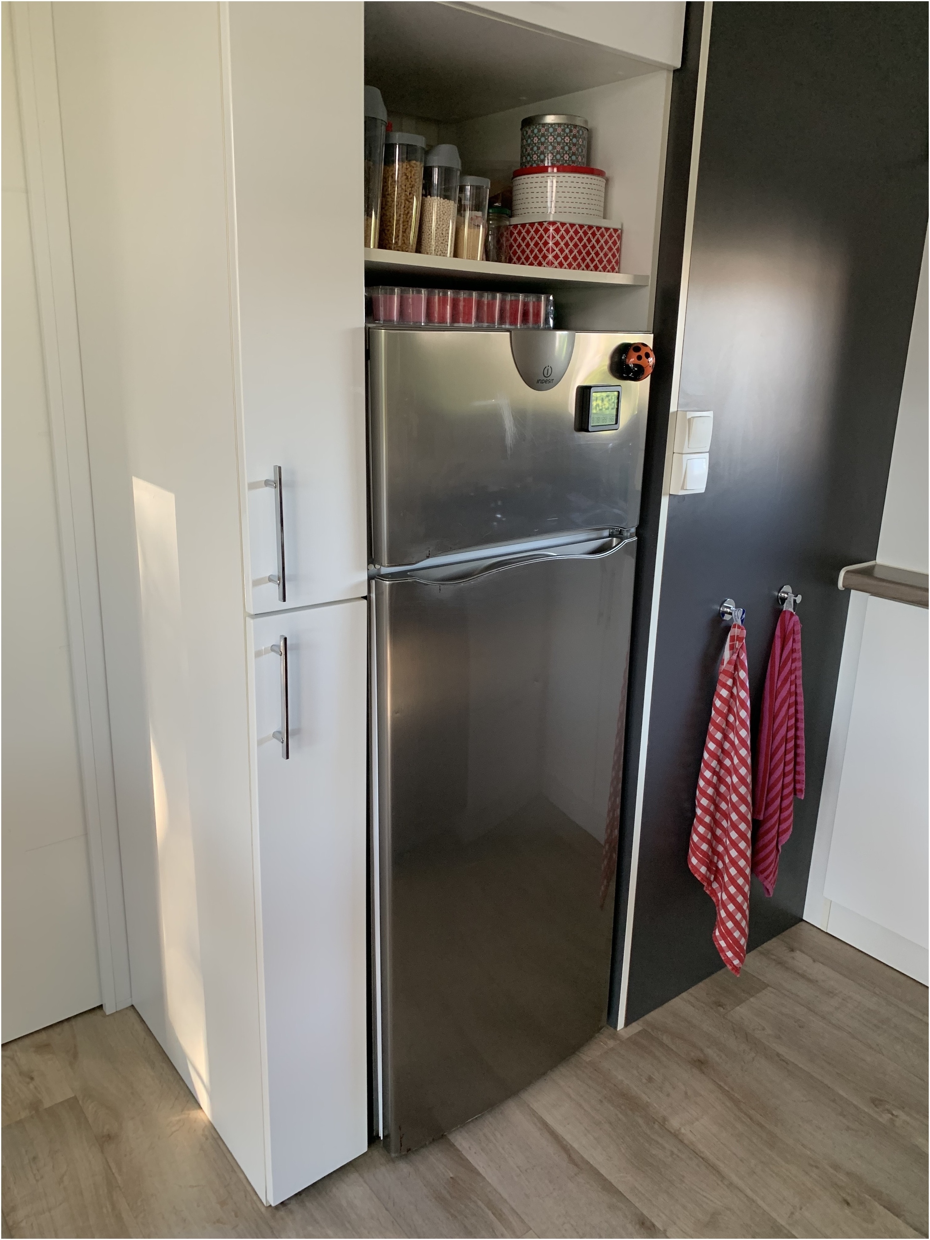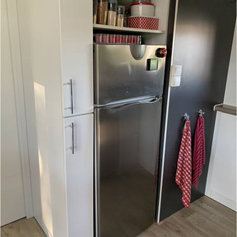 • Open keuken met veel kastruimte, koelkast met klein vriesvak, heteluchtoven en 4-pits gaskookplaat