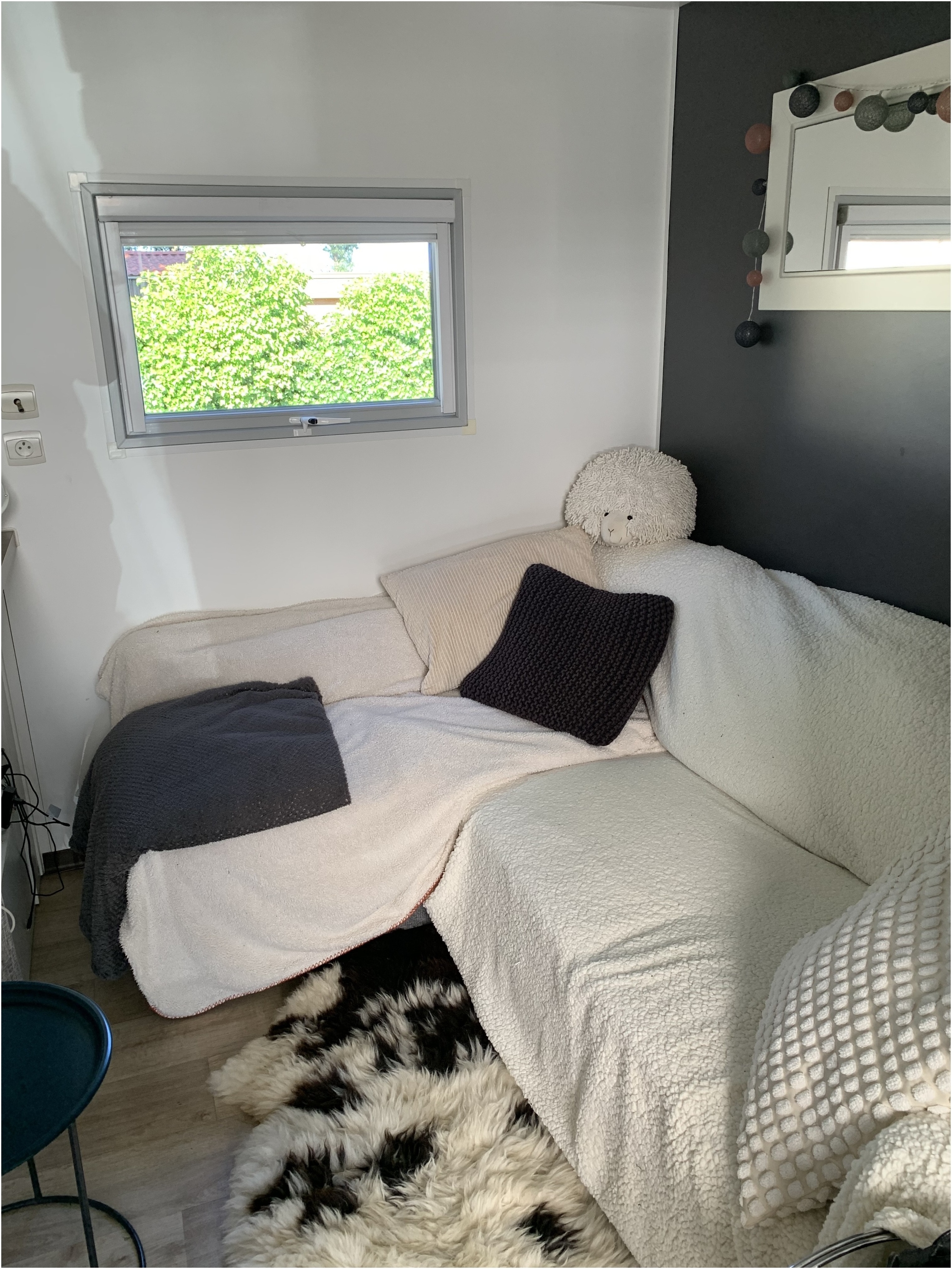 • Aan zijkant 2 grote draai-/kiepramen met PVC raamkozijnen