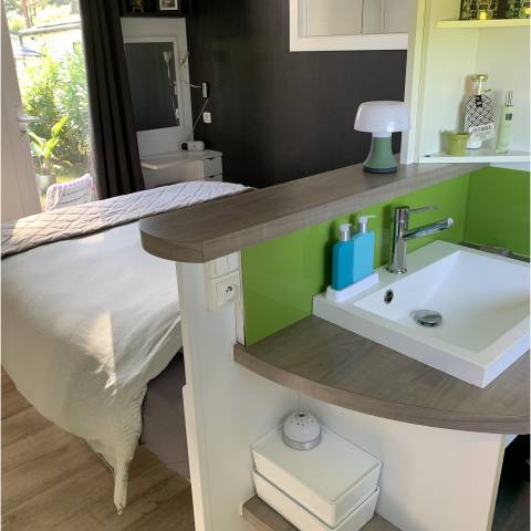 • Ruim, licht en modern chalet met open inrichting door het gebruik van schuifdeuren